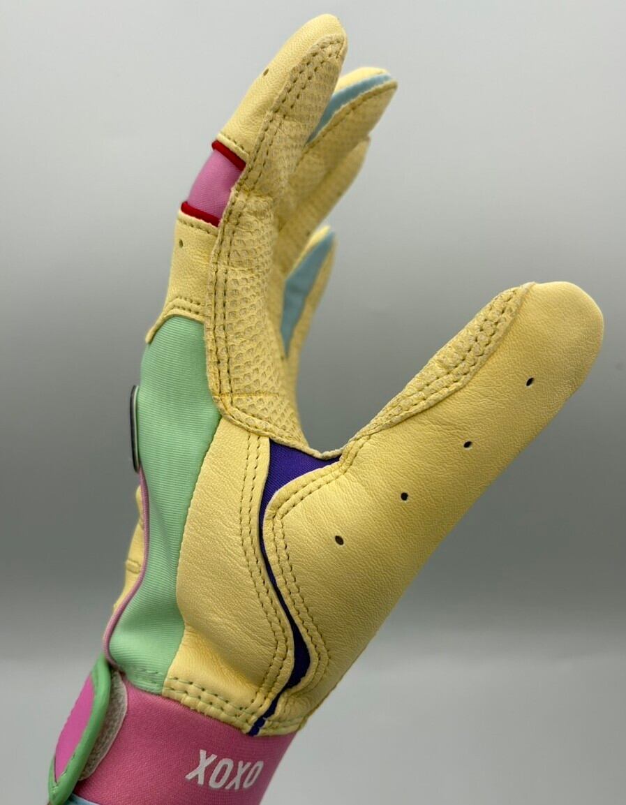 フランクリンのバッティング手袋を、タケスポオリジナルのパステルミックスカラーでカスタム。